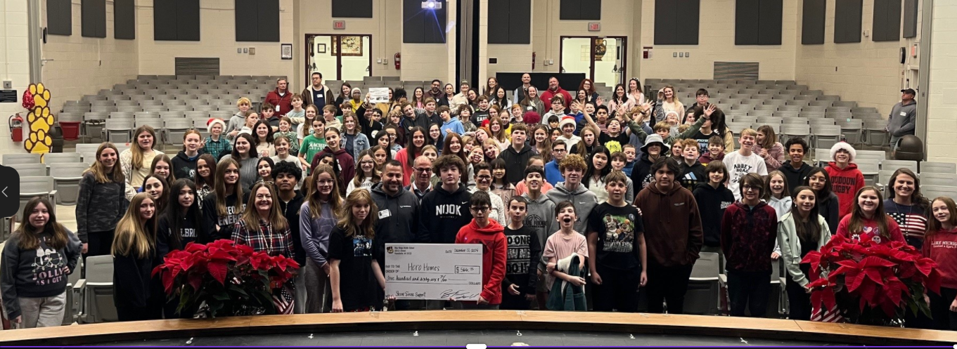On Dec. 12, Sam Chapman, chairman of the Hero Homes Board and CEO of CaseCo attended the check presentation ceremony at Blue Ridge Middle School and spoke to a group of 6th, 7th and 8th grade students. Chapman shared his special connection with Hero Homes as he reflected on his friendship with Spc. Stephan Mace through his years as a student at Blue Ridge Middle and Loudoun Valley High School. Chapman was inspirational in his vision for Hero Homes and passion for students to engage with their community through meaningful work.