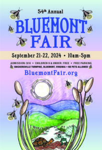 The 54th Annual Bluemont Fair will be held on Sept. 21 and 22, from 10 a.m.-5 p.m. both days, rain or shine. An old-fashioned Country Fair, the Bluemont Fair features traditional crafts (juried), local art and authors, craft and farming demonstrations, music to include traditional, blues, country. There will be a free Children’s Fair, petting zoo, Llamas…