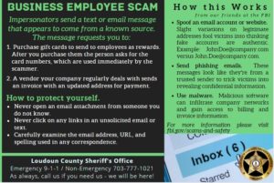 In light of recent scams targeting local businesses, the Loudoun County Sheriff’s Office is reminding members of the community to be wary of imposter email scams. Recently the LCSO has received several reports of businesses receiving email messages that appear to come from a known source such as a supervisor or client. The emails are…