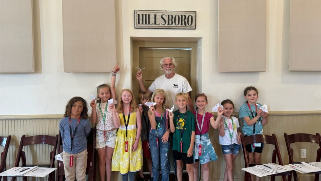 The final day of camp was a grand showcase of the week’s achievements. Campers performed a reader’s theater, complete with a real bicycle, emphasizing perseverance and a growth mindset inspired by the Wright brothers. Following this, a thrilling paper airplane competition allowed teams to apply their engineering skills, with the winning team determined by the longest flight distance. Mayor Vance, the Mayor of Hillsboro, even joined in the fun.