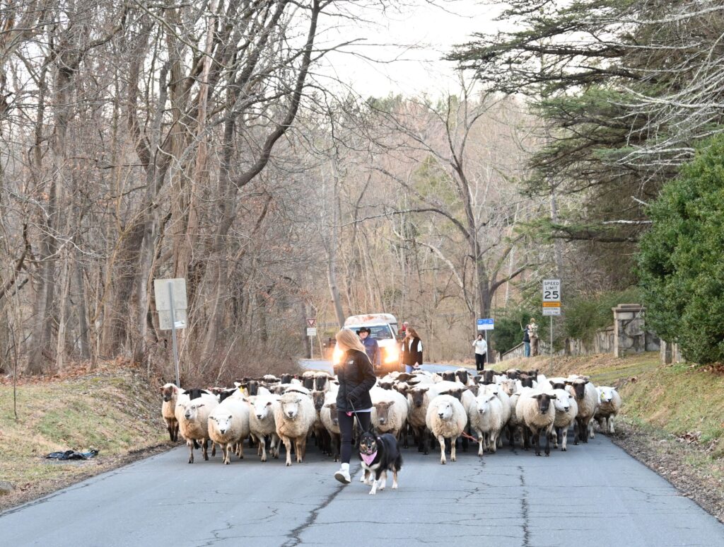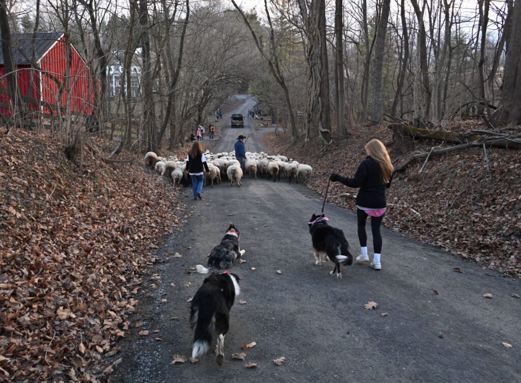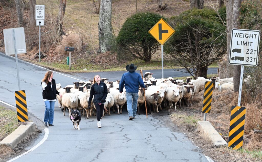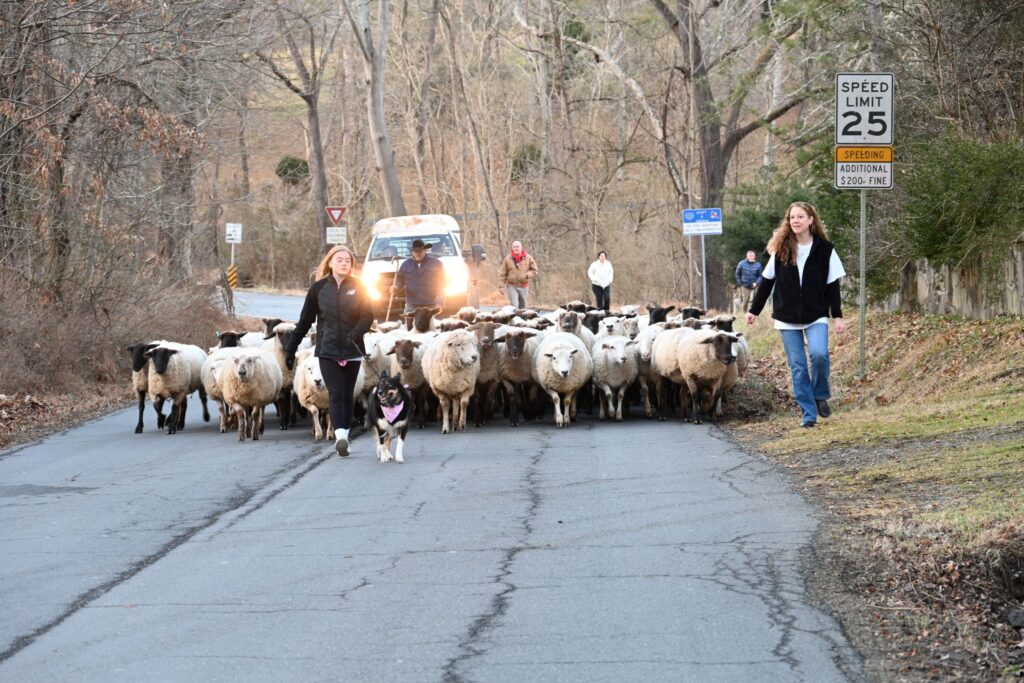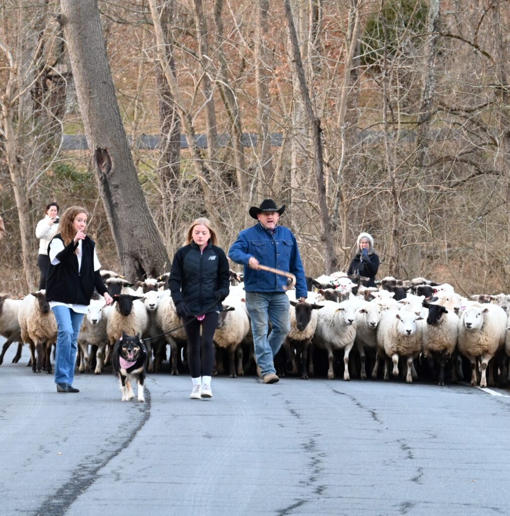 On Jan. 7, the Cochran family held their annual sheep drive, which started January 2015. They started walking the sheep from their late autumn field back to Stone Eden farm. In the next few weeks the lambing season will start. Allen Cochran, along with his wife Nancy and their two daughters, Emily and Montana along with their border collies have a successful drive every year. This year drew a large crowd. Plan to go next year and information on this event is posted mid December on their Facebook page, Stone Eden Farm.