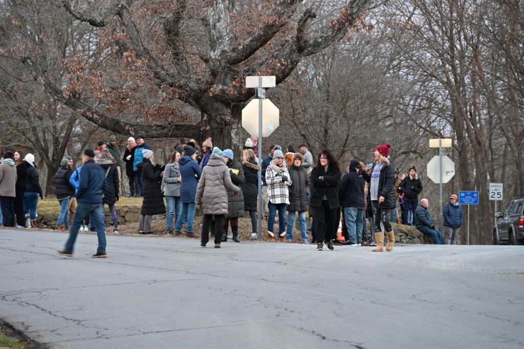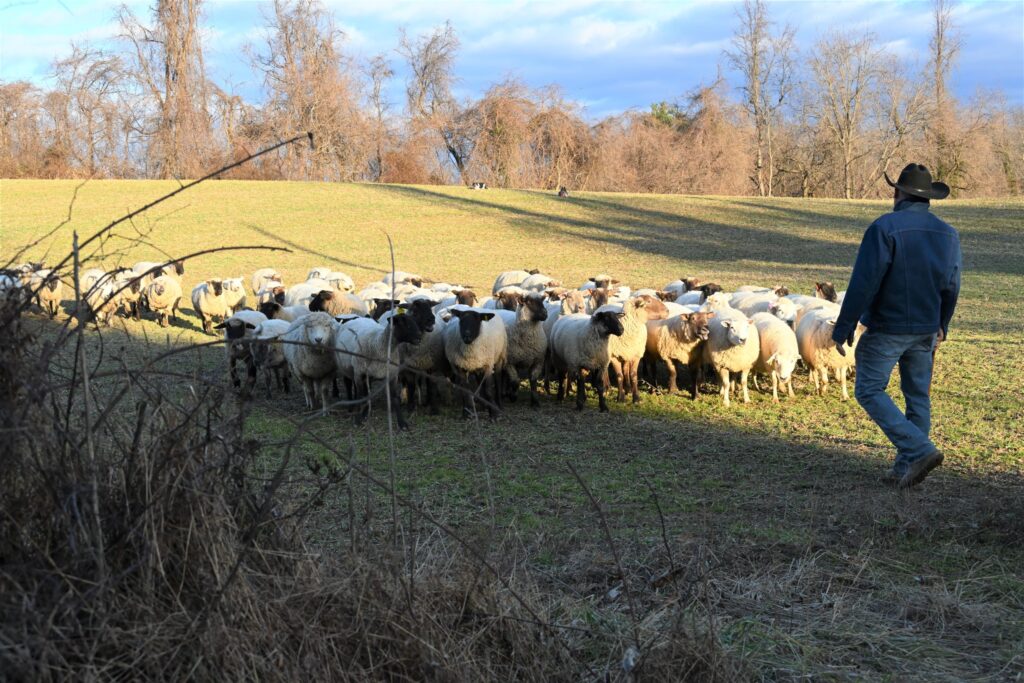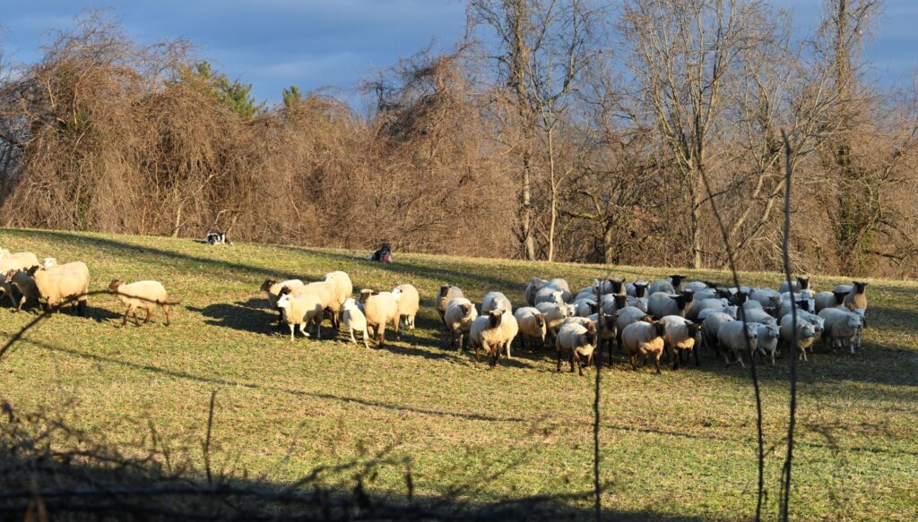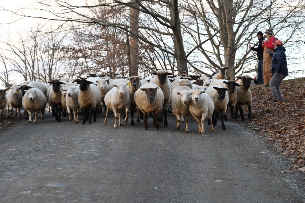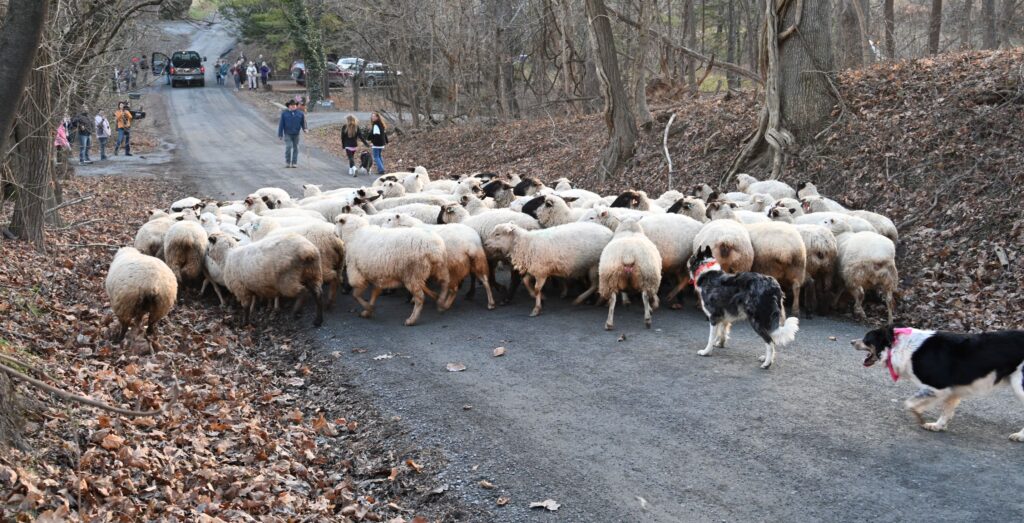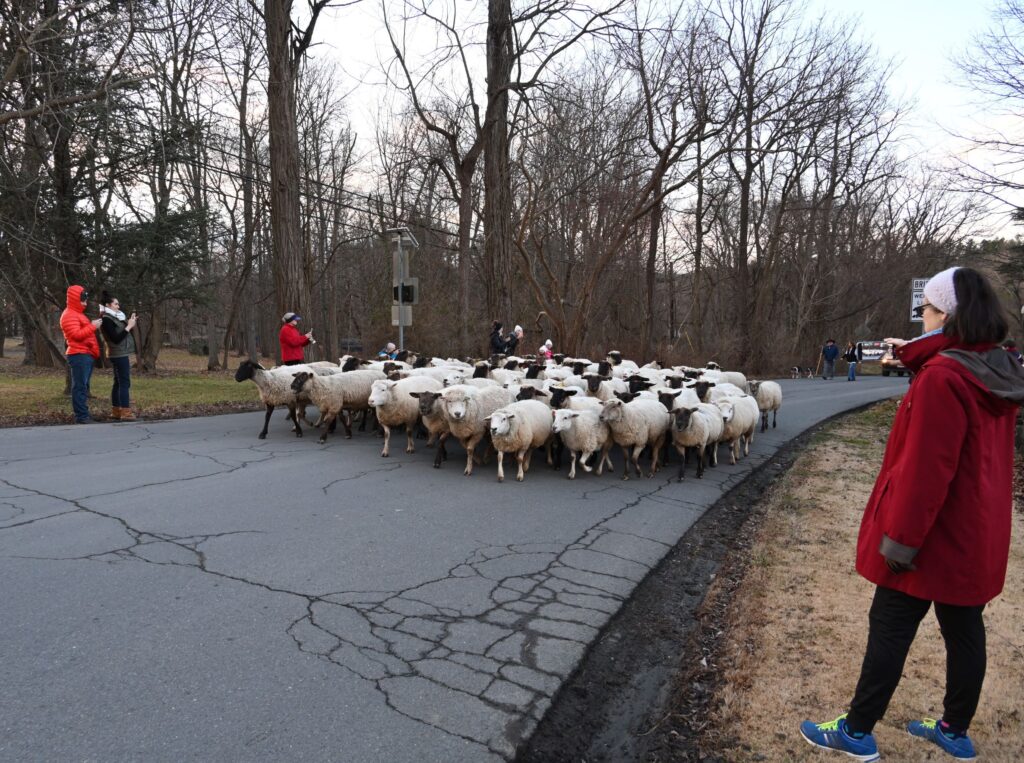 On Jan. 7, the Cochran family held their annual sheep drive, which started January 2015. They started walking the sheep from their late autumn field back to Stone Eden farm. In the next few weeks the lambing season will start. Allen Cochran, along with his wife Nancy and their two daughters, Emily and Montana along with their border collies have a successful drive every year. This year drew a large crowd. Plan to go next year and information on this event is posted mid December on their Facebook page, Stone Eden Farm.