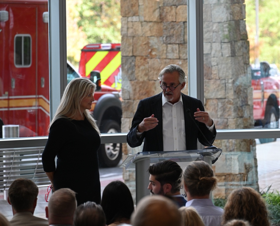The announcement was made on Oct. 7 during a ceremony for the Inova Virts Miller Family Emergency and Trauma Center in Leesburg, where hospital leadership, local officials, medical staff, members of the Loudoun County Fire and Rescue Fire Marshal’s Office, Sheriff Mike Chapman along with members of the Sheriff’s Office, and donors gathered to mark the milestone.
