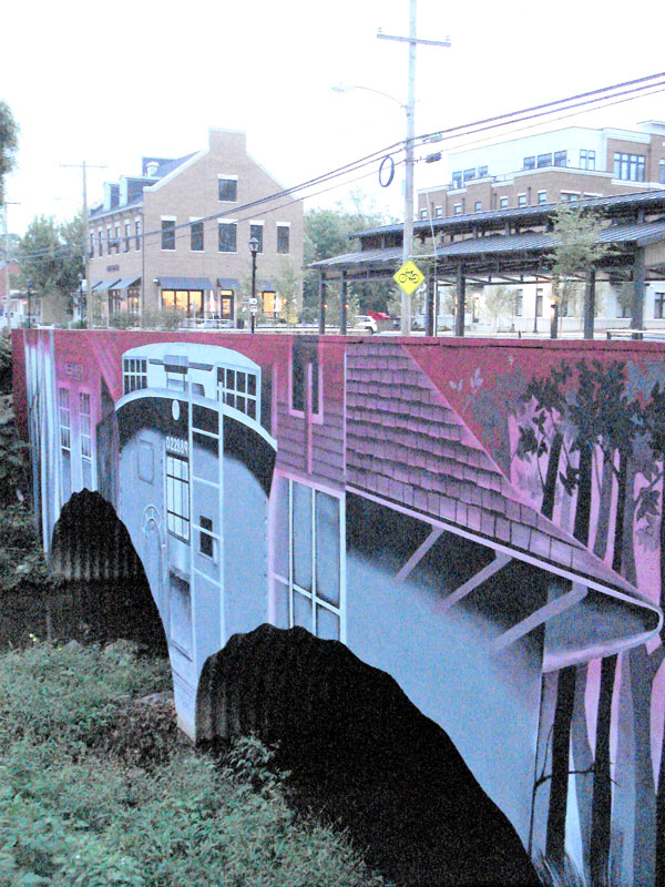 The train has returned along those tracks from the past, and it is good. Or, so I feel. You see, upon my own return to Georgetown Park in Leesburg, I found some very captivating renderings of local locomotive history bedecking the faces of the humble bridge bisecting the linear acreage (or – I saw a couple ‘purdy pichers’ on the cement walls).
