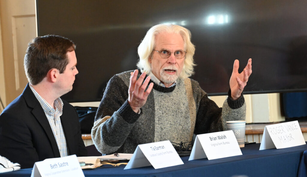 Kaine said that farming and forestry is the biggest part of Virginia’s economy. Agriculture and forestry are still number one. He said the uncertainty is really hard and farmers are dependent on a healthy economy. He said a lot of the farmers at the meeting have applied for grants and at the moment things are on hold.