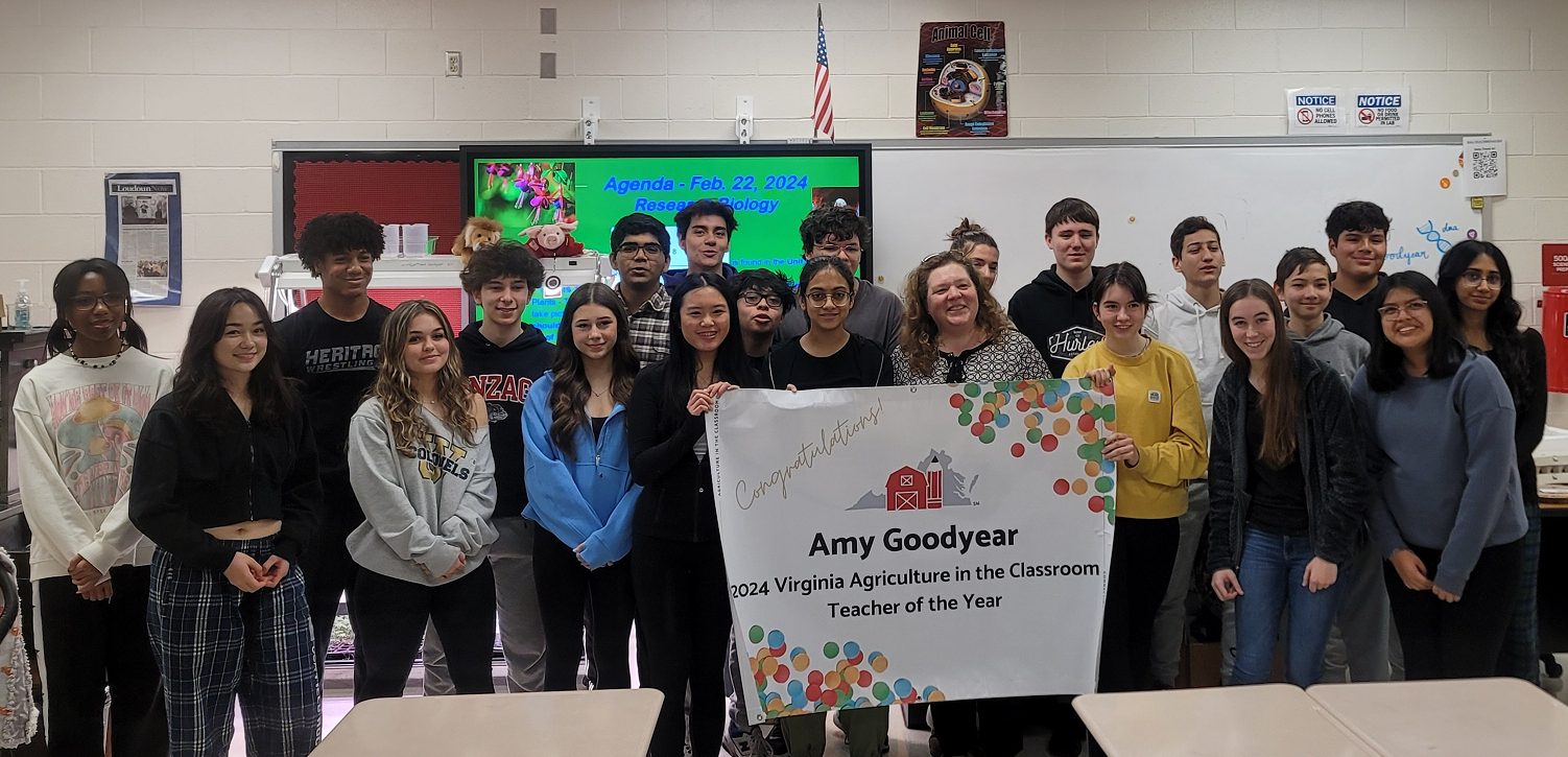 Amy Goodyear, a biology teacher at Heritage High School, has been named the Virginia Agriculture in the Classroom 2024 Teacher of the Year. The award recognizes a Virginia educator for incorporating agriculture into their core curriculum.