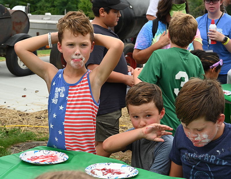 Little ones who’ve yet to get farm animals to call their own were treated to the “Touch a Tractor” equipment event, a firefighters’ program, and the boisterous Pig Scramble. Kids grouped by age—5 and 6, 7 and 8, 9 and 10—took to the main ring with two squealing and very fast pigs. The challenge: to catch a pig first. The winner’s prize: $20 or a pig.