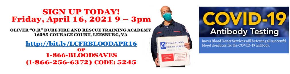 Make your blood donation with Loudoun County Fire and Rescue on April 16