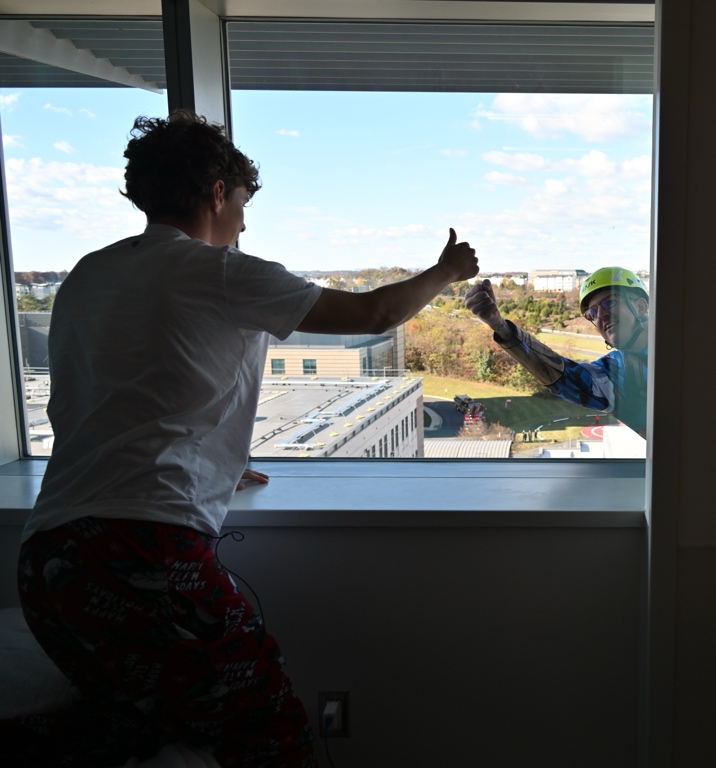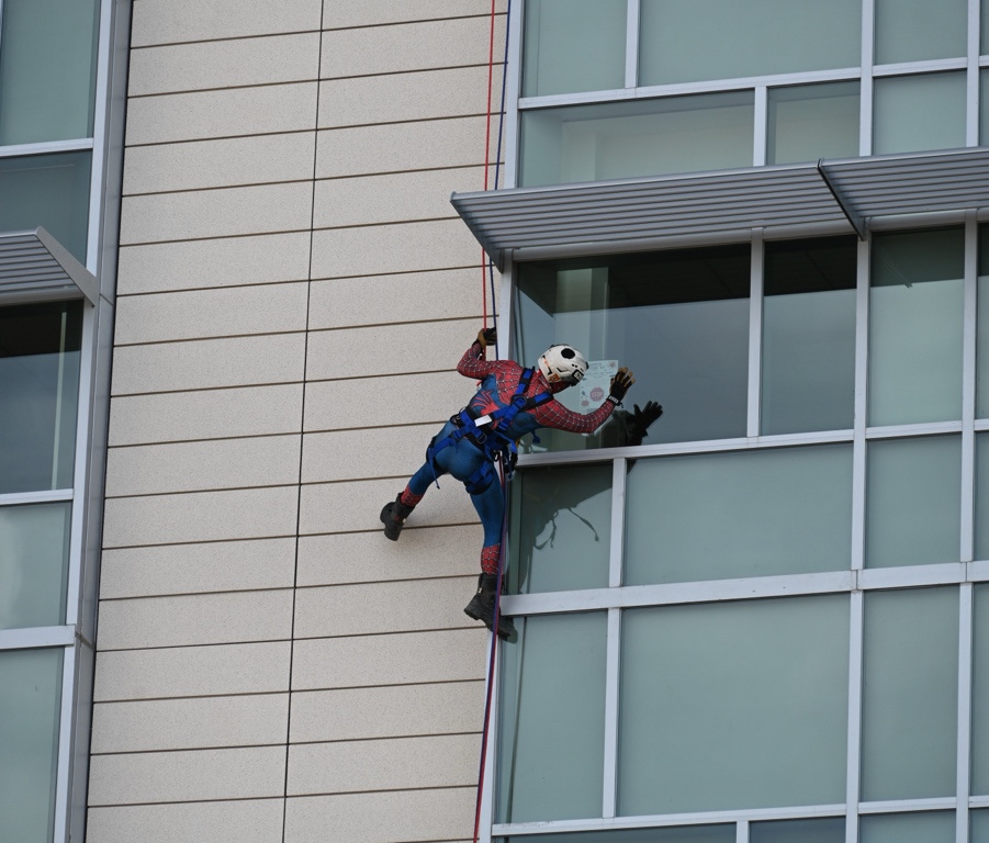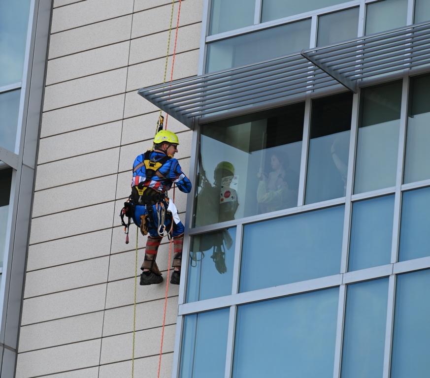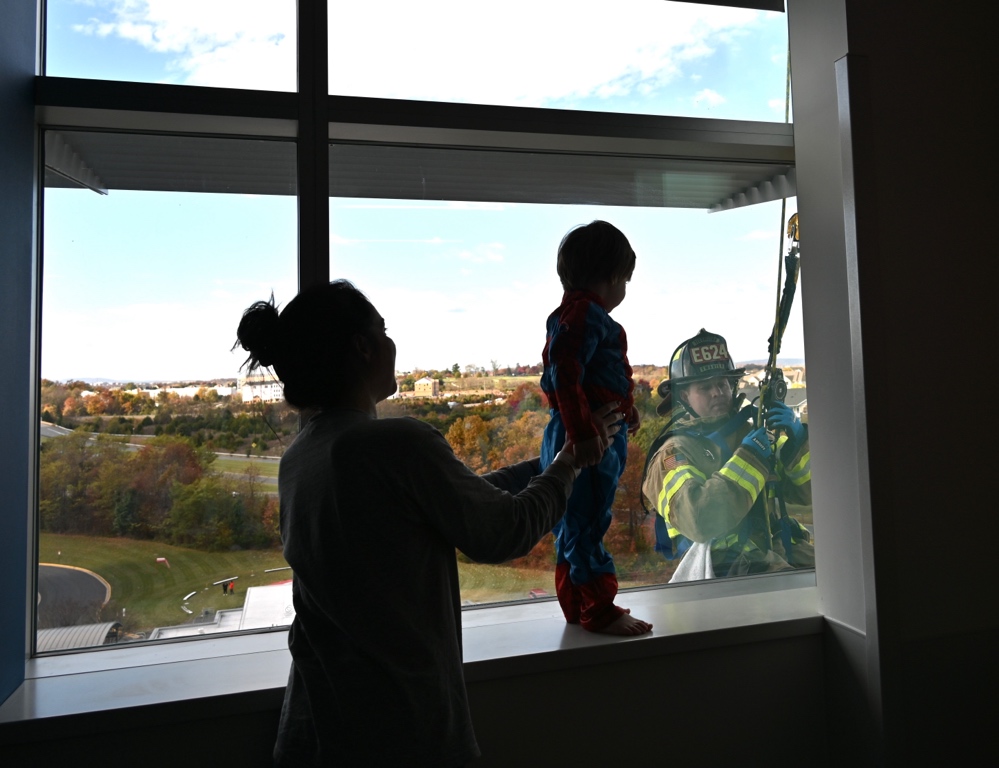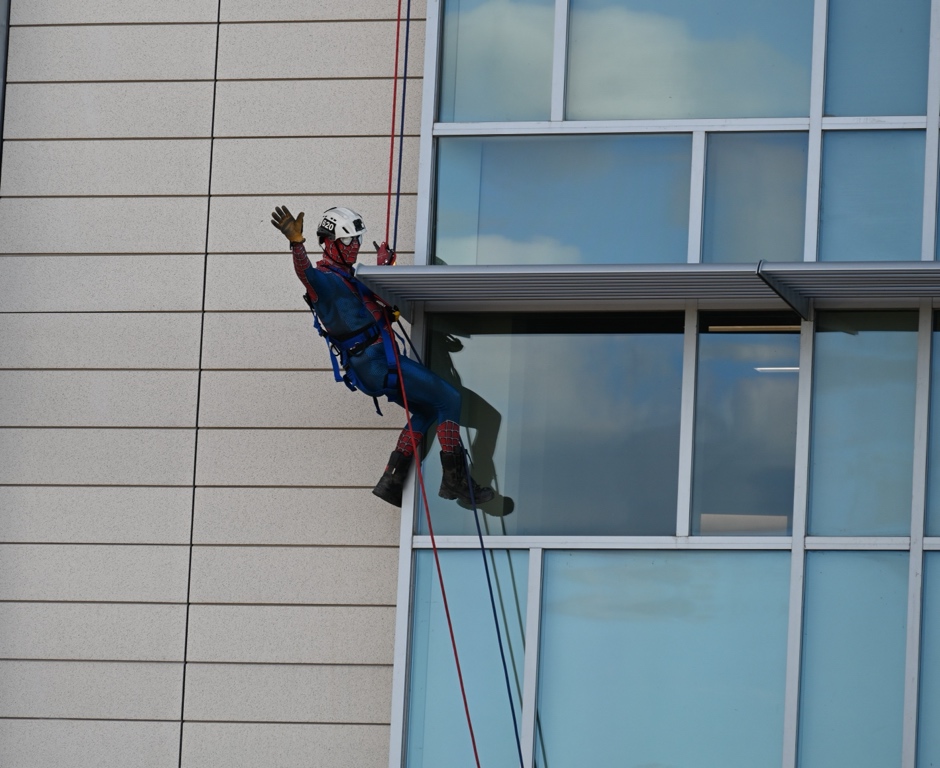Halloween morning brought a sky-high surprise to pediatric patients at Inova Loudoun Hospital as real-life superheroes rappelled down the side of the building to spread a little magic and cheer.