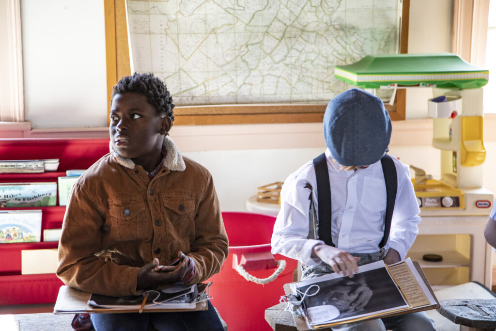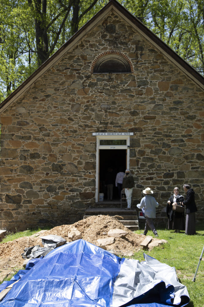 After visiting the 1819 Goose Creek Meeting House—across the road from the 1765 Goose Creek stone meeting house—the 5th graders went on to see the village’s two African American churches—the 1884 Mt. Olive Baptist Church and the 1885 Grace Methodist Episcopal Church. Grace is under restoration with Jeffrey Jackson, a former teacher, managing the project. The work includes the church basement where local Quakers taught sewing, cooking, and shoe repair.
