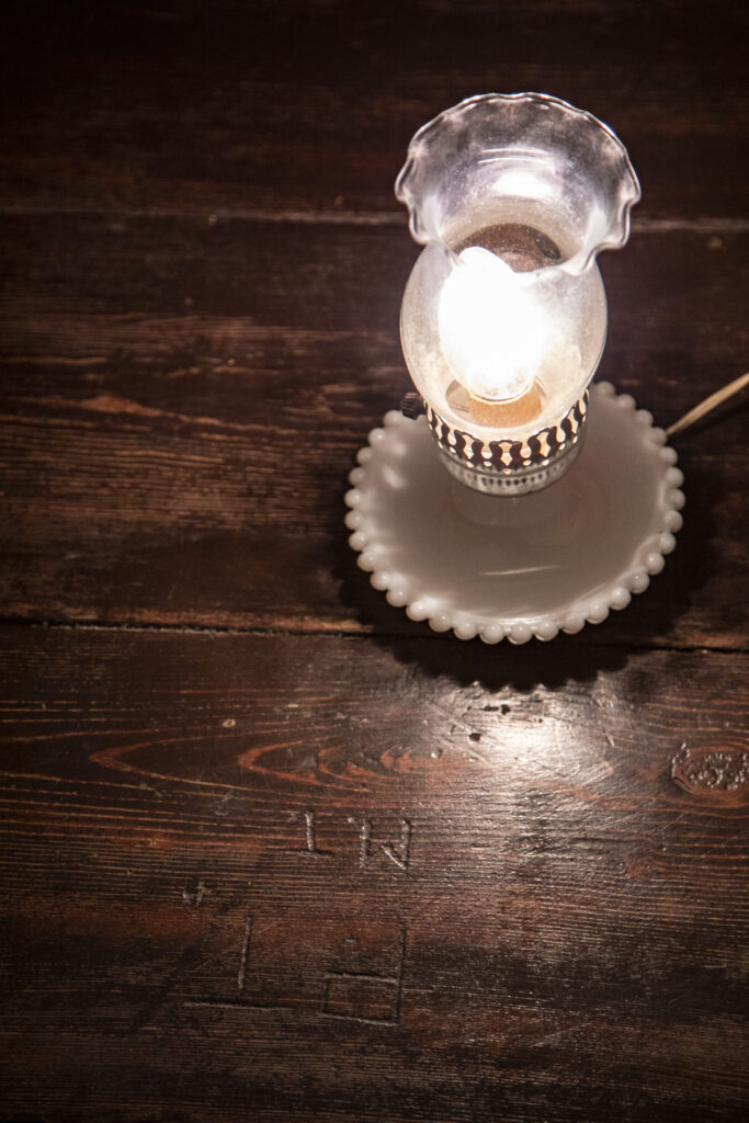 Springdale was home to the prominent educator and abolitionist Samuel M. Janney. Students toured the former girls’ boarding school to see hiding places for African Americans traveling on the “Underground Railroad.” Right, soldiers’ initials were carved in the third-level floorboards when Springdale served as a Civil War hospital.