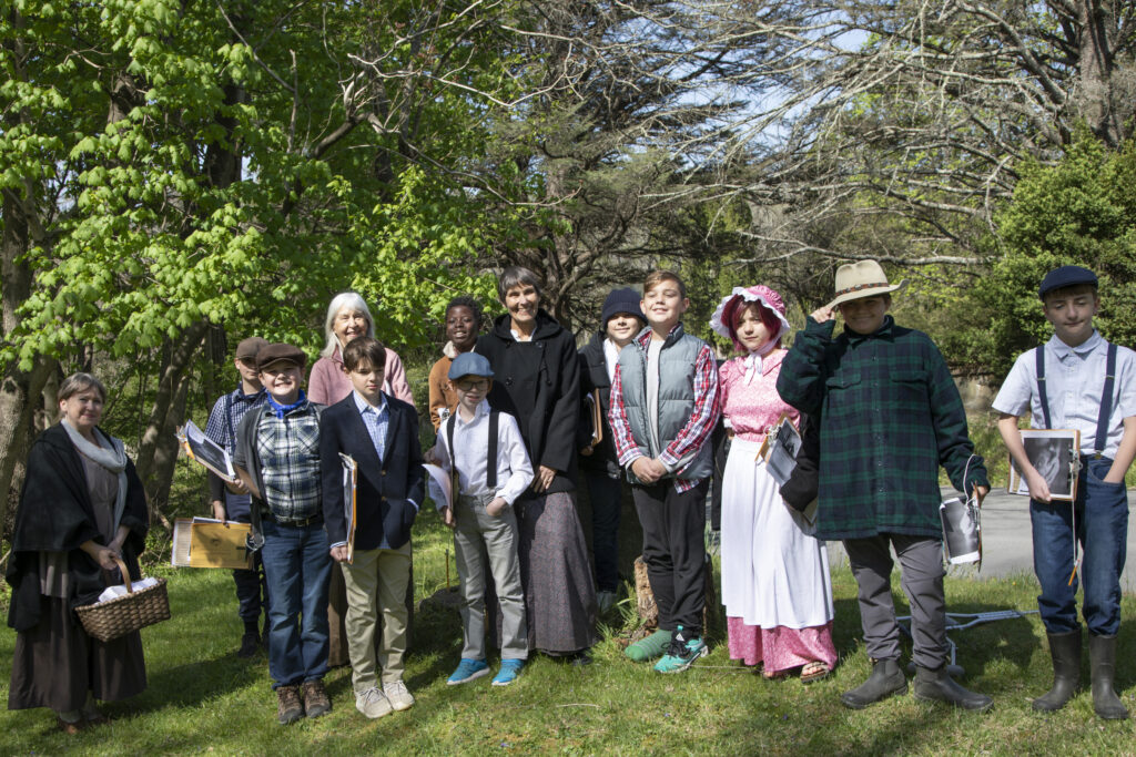 Lincoln Elementary School 5th graders head up Foundry Road to visit Oakdale, the one-room Quaker school built in 1815.