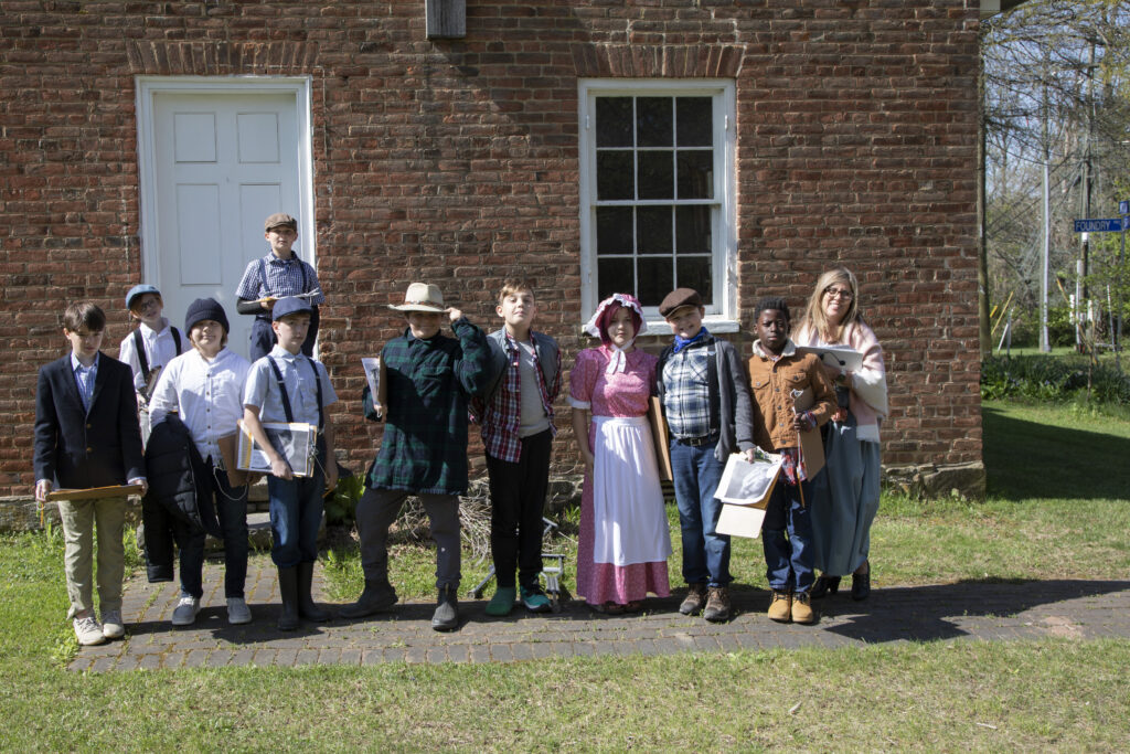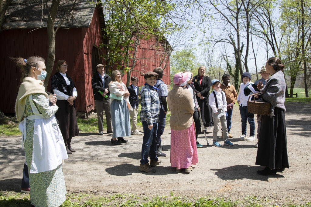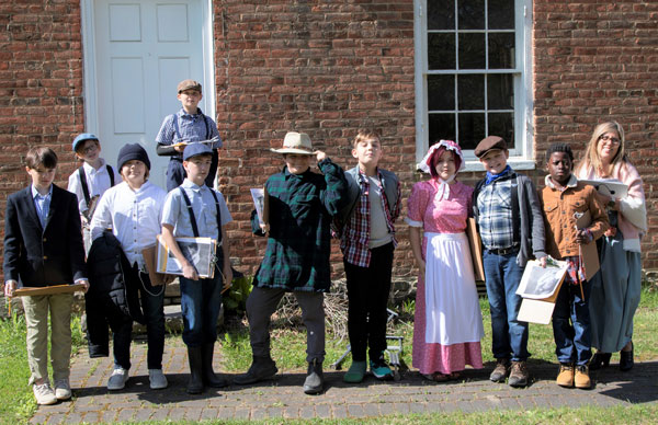 Lincoln Elementary School 5th grade students and their teacher, Renee Voce, far right, visit Oakdale, the village’s 1815 one-room school.