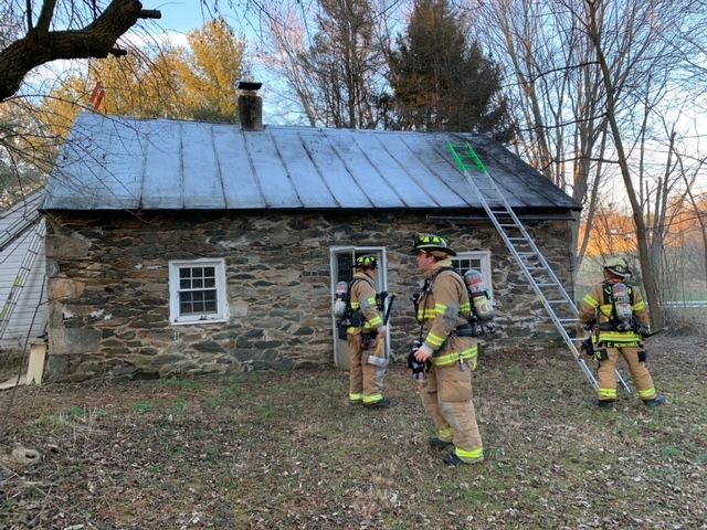 At 5:38 p.m. on Wednesday, as crews were wrapping up operations on the fire in Lovettsville, fire and rescue units from Loudoun County which included Lucketts, Hamilton, Leesburg, Lovettsville, Purcellville, Round Hill, and mutual-aid assets from Frederick County, MD were dispatched to a house fire in the 15,000 block of Clover Hill Road in Waterford. The initial 911 caller reported that there was “fire from the roof” of a neighboring home on his street. The caller remained on the line, rushing to the residence to alert the occupants to the fire and to advise them to evacuate.