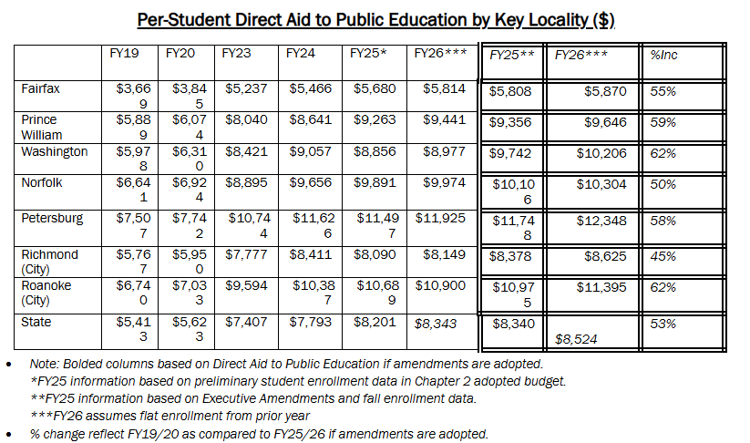 - Note: changes in the calculation of the Local Composite Index (LCI) driven by the relative economic growth of localities affect direct aid to public education calculations.
