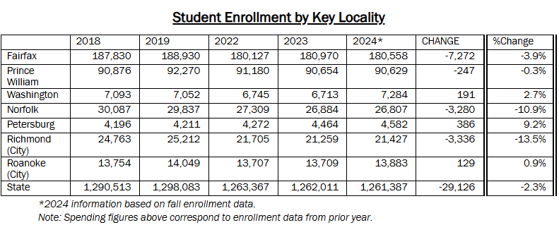 Since the pandemic:- Fairfax County is up 49% total, 55% per student